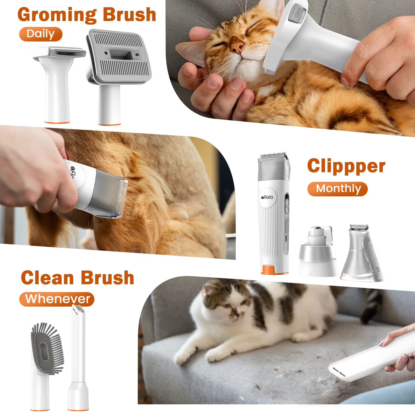 - š°ćEasy Grooming With Less MessćOur innovative pet grooming kit is designed with a vacuum. It offers 3 powerful suction levels to effectively remove hair while you trim and brush, even from pets with thick coats. Enjoy a clean and tidy home without pet hair spreading everywhere!