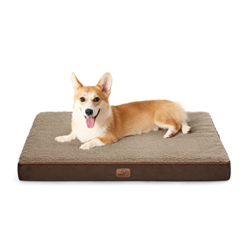 Bedsure Large Dog Bed Washable - Orthopedic Dog Bed and Mattress Mat for Dog Crate with Removable Plush Sherpa Cover, Gifts for Dog