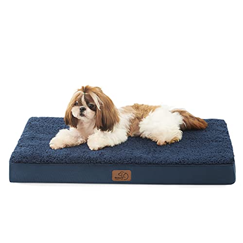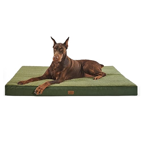 Bedsure Large Dog Bed Washable - Orthopedic Dog Bed and Mattress Mat for Dog Crate with Removable Plush Sherpa Cover, Gifts for Dog