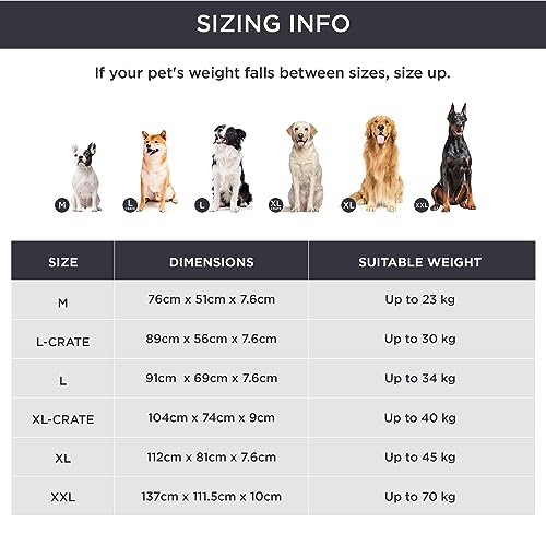 - VERSATILE DOG BED: Applied to dogs, cats, or other pets under 34 KG and 91x69x7.6cm rectangle shaped mattress also fits for any elevated dog bed, crate, pet house or dog bed trampoline - Your buddies will love lounging on this cozy dog bedding in your room instead of the cold hardwood floor, even your kids like to snuggle with your fur baby.