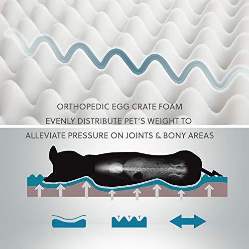 - EGG CRATE FOAM: Bedsure dog bed crate evenly distributes pet’s weight to alleviate pressure on joints & bony areas - Resemble the bottom of an egg carton, this bumpy surface is softer than a solid block of foam and helps air circulate to keep puppies cool in the hotter months - Convoluted foam also offers shock absorption that is beneficial for older dogs.