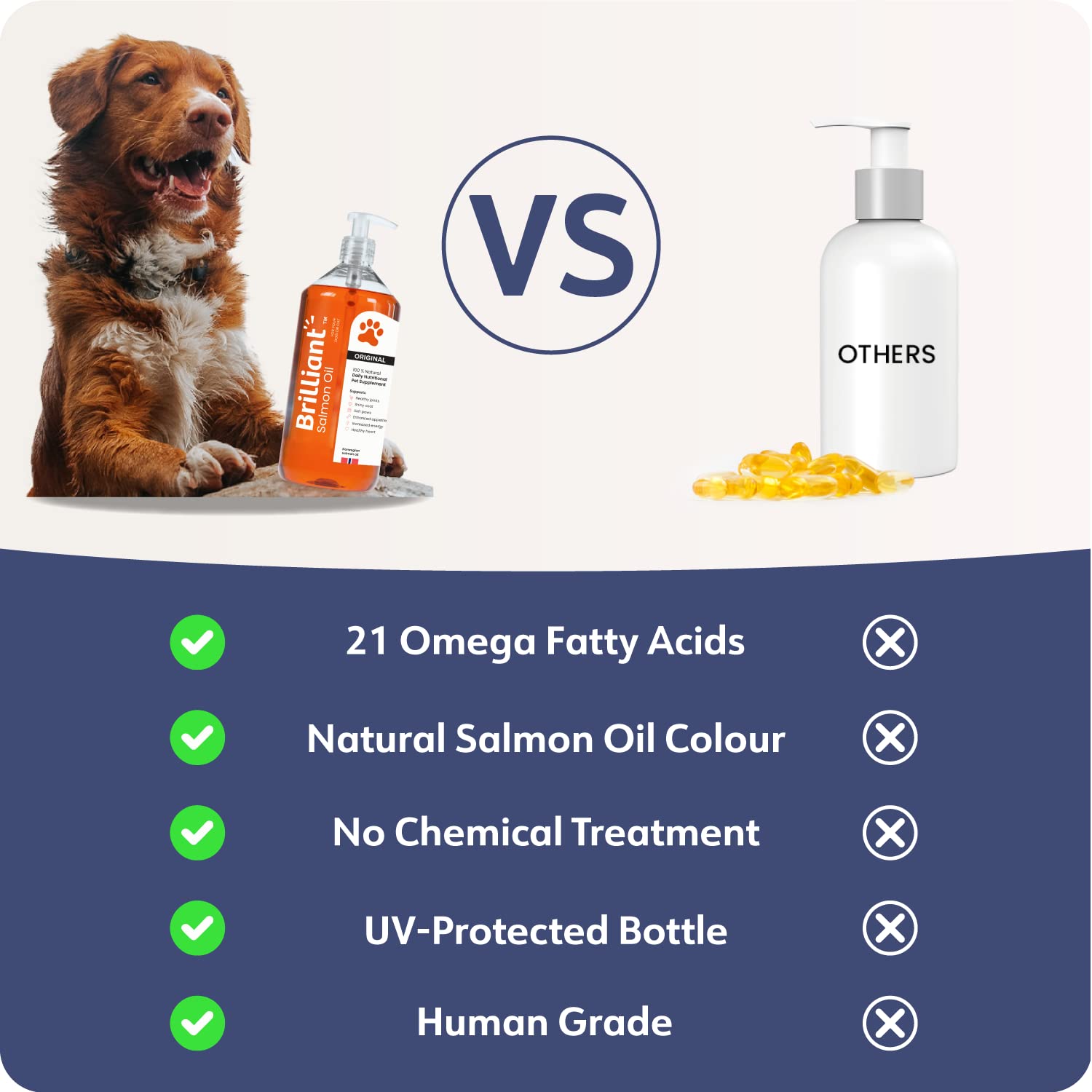 - LOVED BY DOGS, CATS & PETS: We taste tested our product to make sure pets approve, 100% chose Brilliant Salmon Oil over others! No more need for capsules, simply pump our liquid onto dog food, cat food or your pets meal, & see results within days!