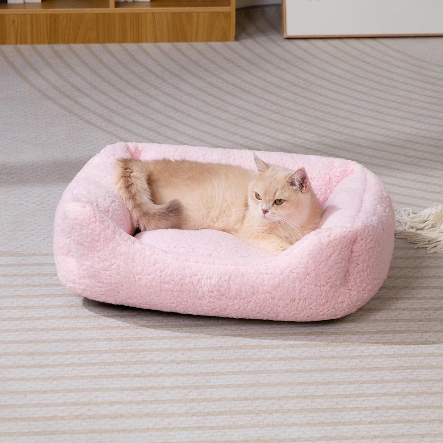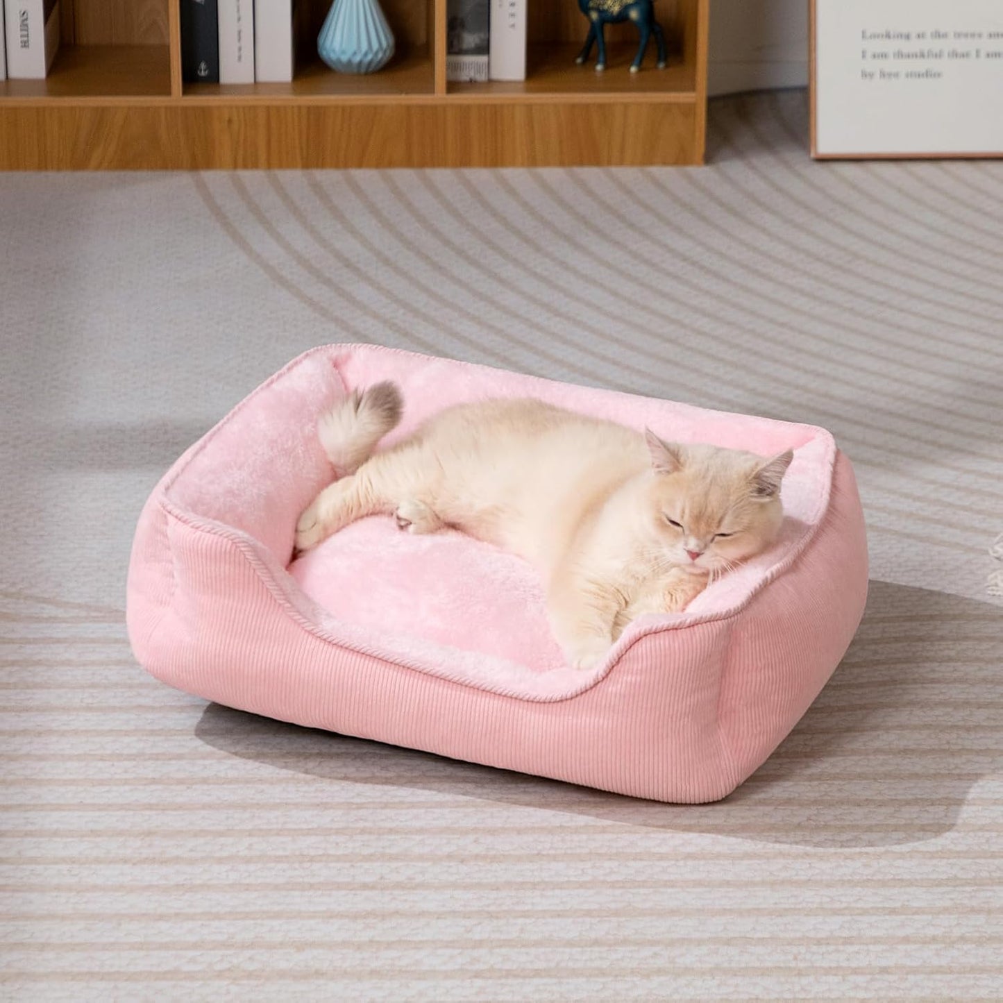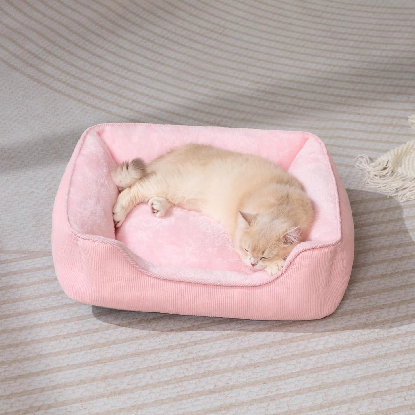 Cat Bed Small Dog Bed Pet Bed for Cats and Puppy, Soft Pet Sleeping Bed Breathable Pet Cushion, Beige(55 * 45 * 15cm)
