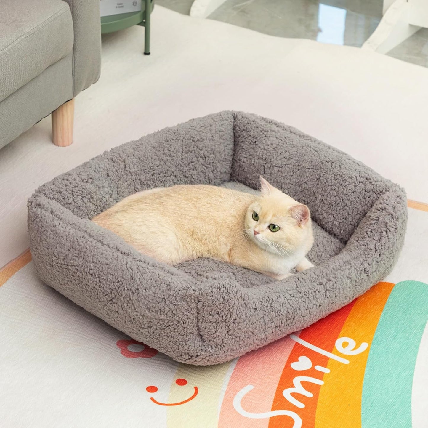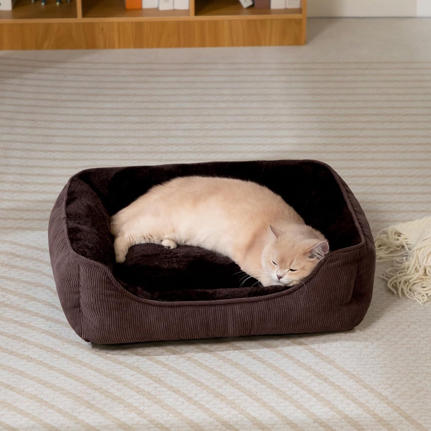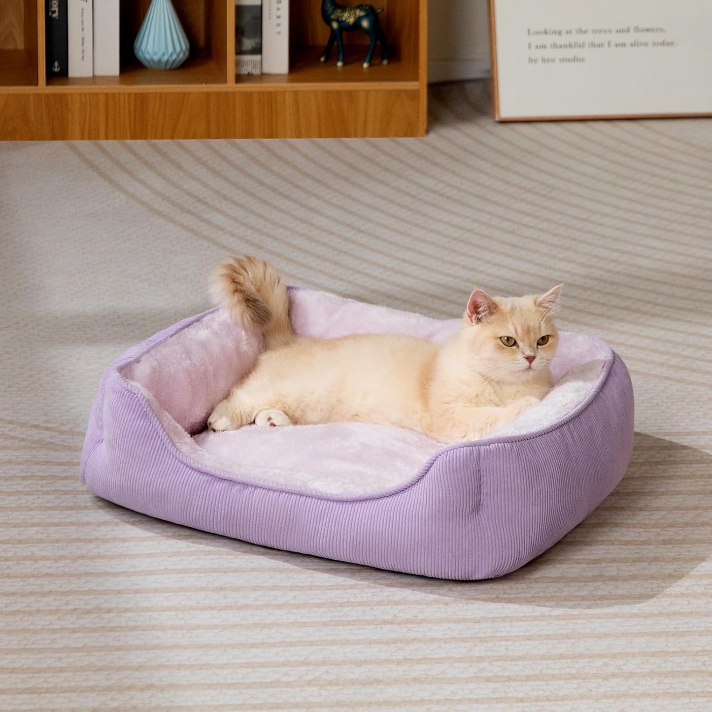 Cat Bed Small Dog Bed Pet Bed for Cats and Puppy, Soft Pet Sleeping Bed Breathable Pet Cushion, Beige(55 * 45 * 15cm)