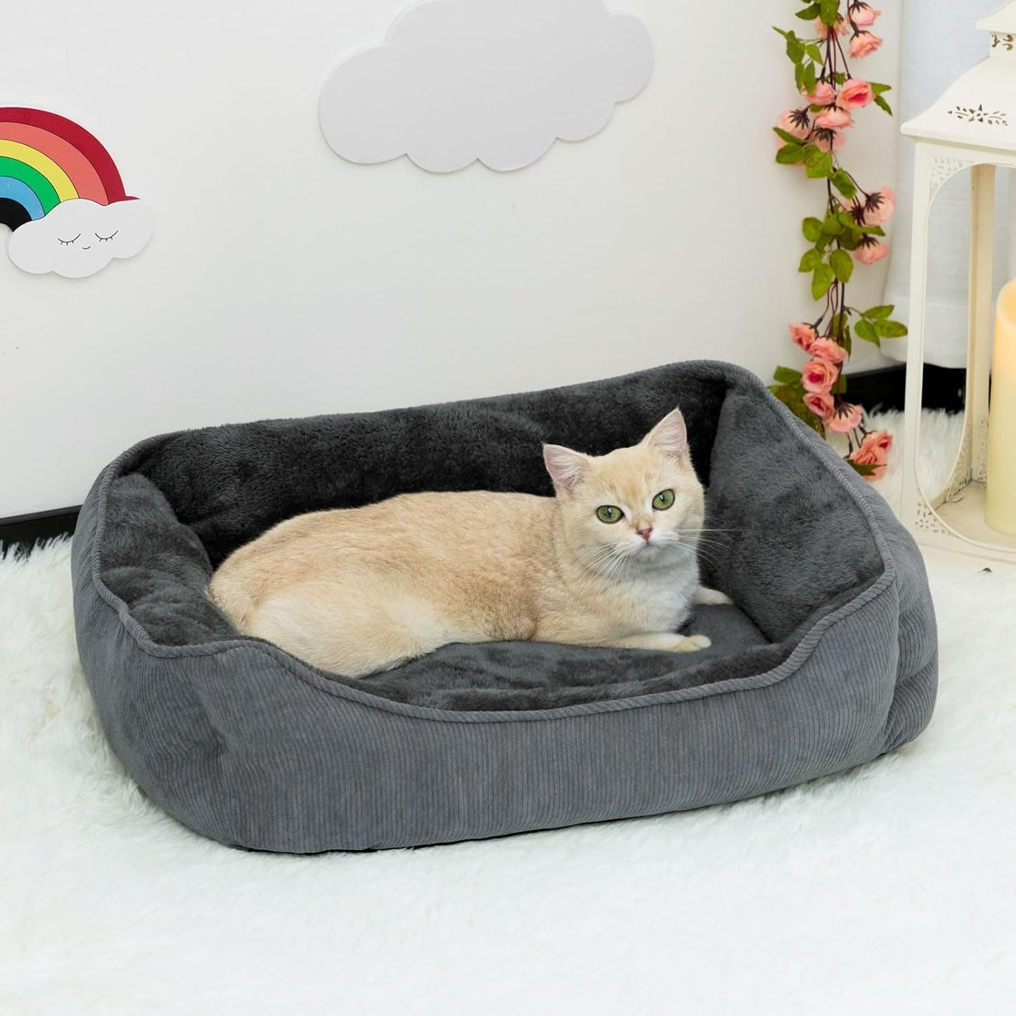 Easy Clean: This cat bed/dog bed can be easily wiped with a damp cloth, simple to remove hair. Hand washable better, and if machine washed, in cold gentle cycle. Air dry, no tumble dry, no iron and no bleach