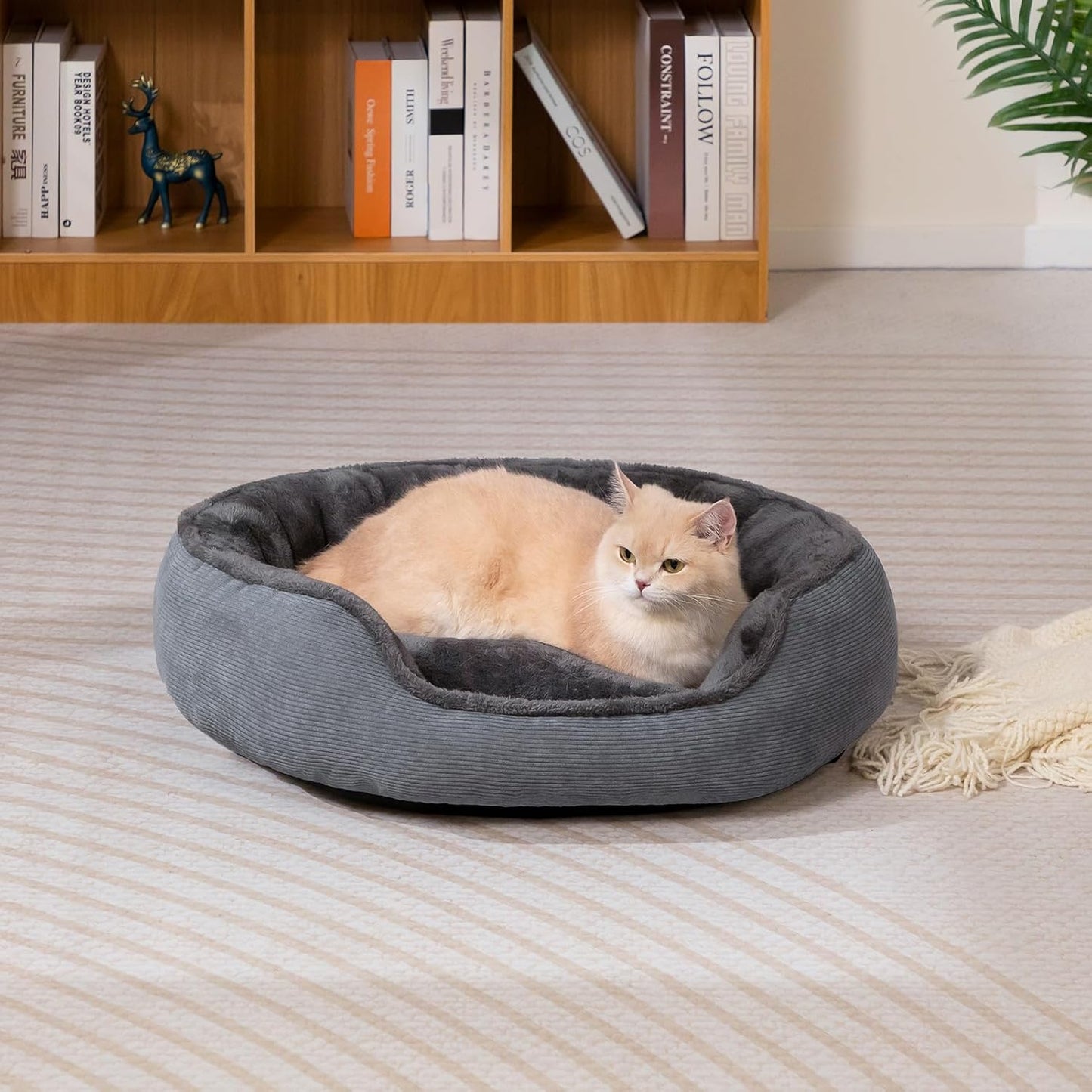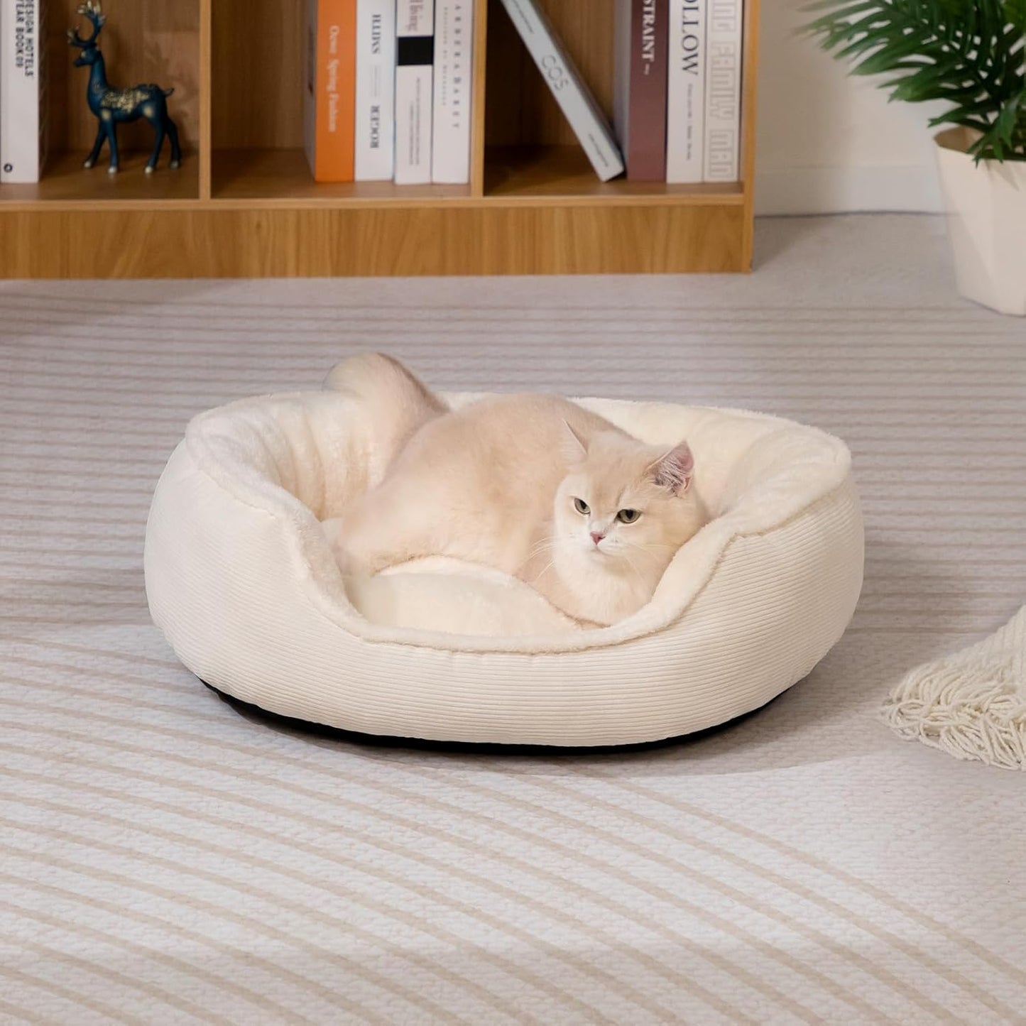 Higher quality PP cotton is used to make the pet bed softer and fluffier. Since it is vacuum packed, need to wait 24-48 hours to return to its full shape. Please gently pat and pull to help the cat bed expand faster