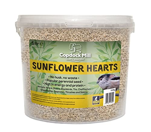 Copdock Mill Sunflower Hearts Bird Food 3.2kg / 5L Tub – No Mess Sunflower Hearts for Wild Birds – Bird Seed Suitable for Sunflower Seeds Feeders & Bird Tables
