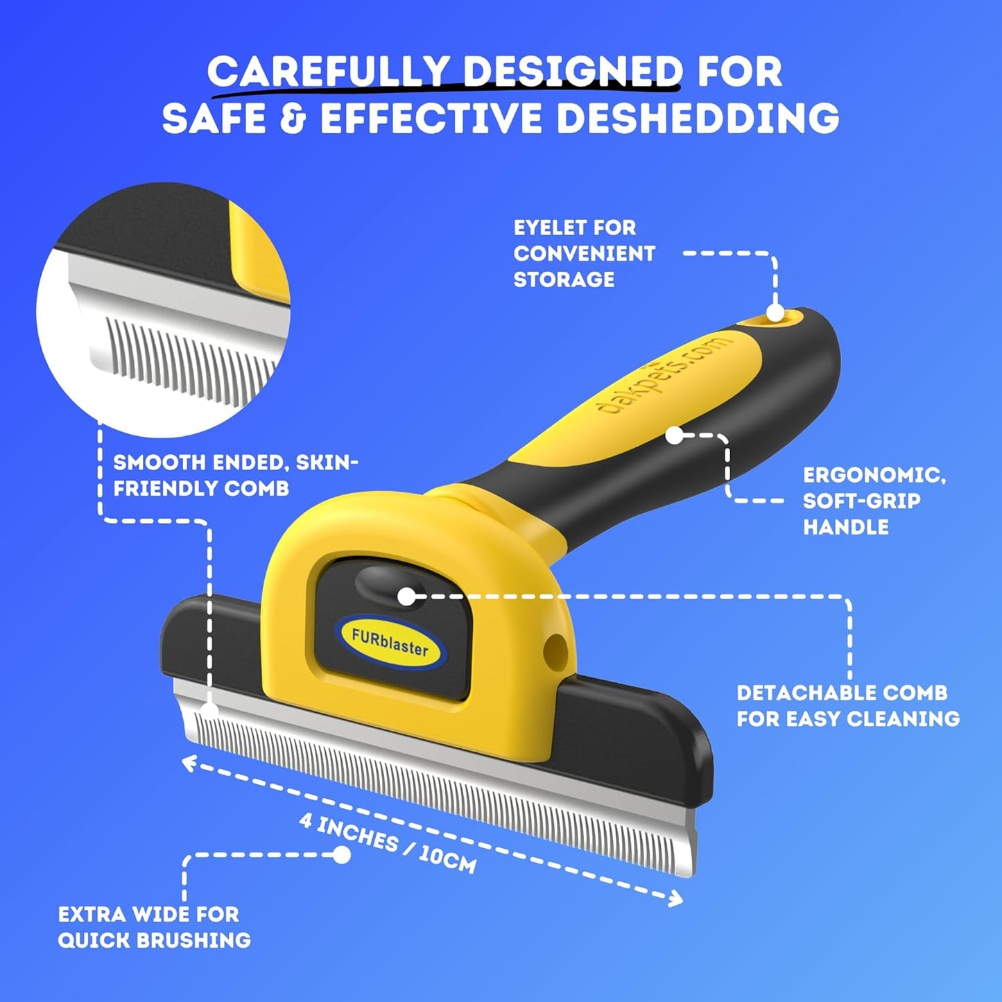 USER-FRIENDLY: This easy-grip deshedding tool for dogs and cats has a versatile detachable design that allows you to remove the comb at just the press of a button. This allows for easy cleaning, and the detached pet fur remover comb can even be used on its own for hard-to-reach areas.