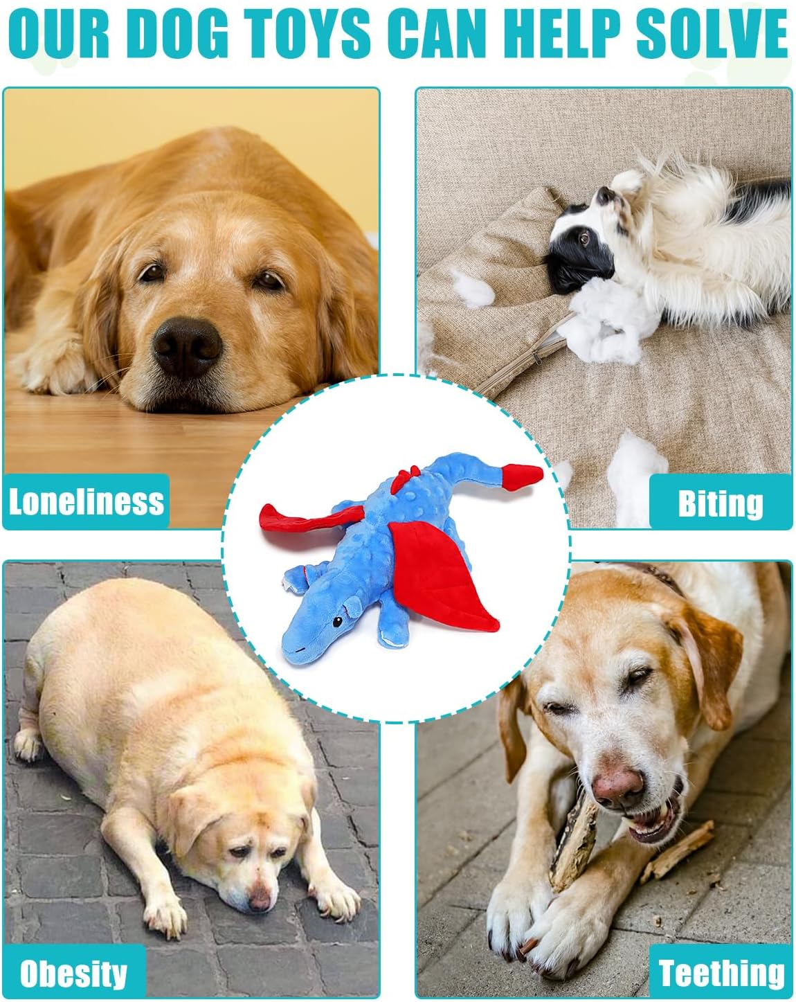 Dog Toys Squeaky, Soft Plush Dinosaur Puppy Chew Toy with Crinkle Paper, Funny Interactive Indestructible Pet Teething Toys for Small Medium Large Breed