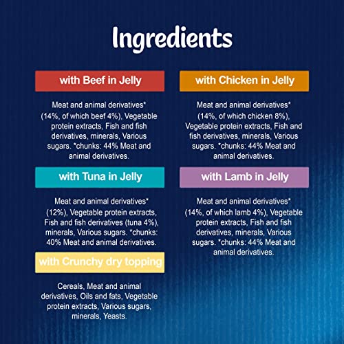 Cats love the taste of FELIX, and seniors are no different. Our specially formulated Senior Cat Variety Selection is a collection of recipes with all the nutrients your older cat needs for their health and vitality - and they taste great too! Our recipes for senior cats (aged 7+) contain a special balance of nutrients designed just for them, including appropriate protein levels, vitamins, and minerals, as well as antioxidants. But it isn't all about nutrition - each recipe tastes amazing, and no cat will be able to resist the tender chunks with meat or fish in a savoury jelly! Our Senior Cat Variety Pack contains four great recipes with bed, chicken, turkey, and salmon - so your senior cat can enjoy a different meal every time.