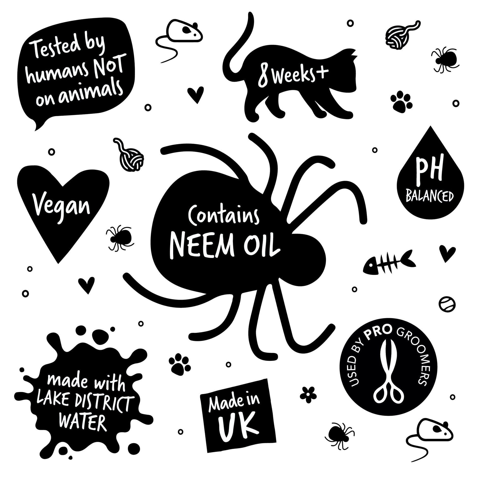 - Tested by humans, NOT on animals - Our pH balanced formulations are also paraben free and vegan, so not only does it help keep away nasties but there are no nasties in the formula either! Suitable for all breeds of cats and kittens from 8 weeks and even the most sensitive of skin