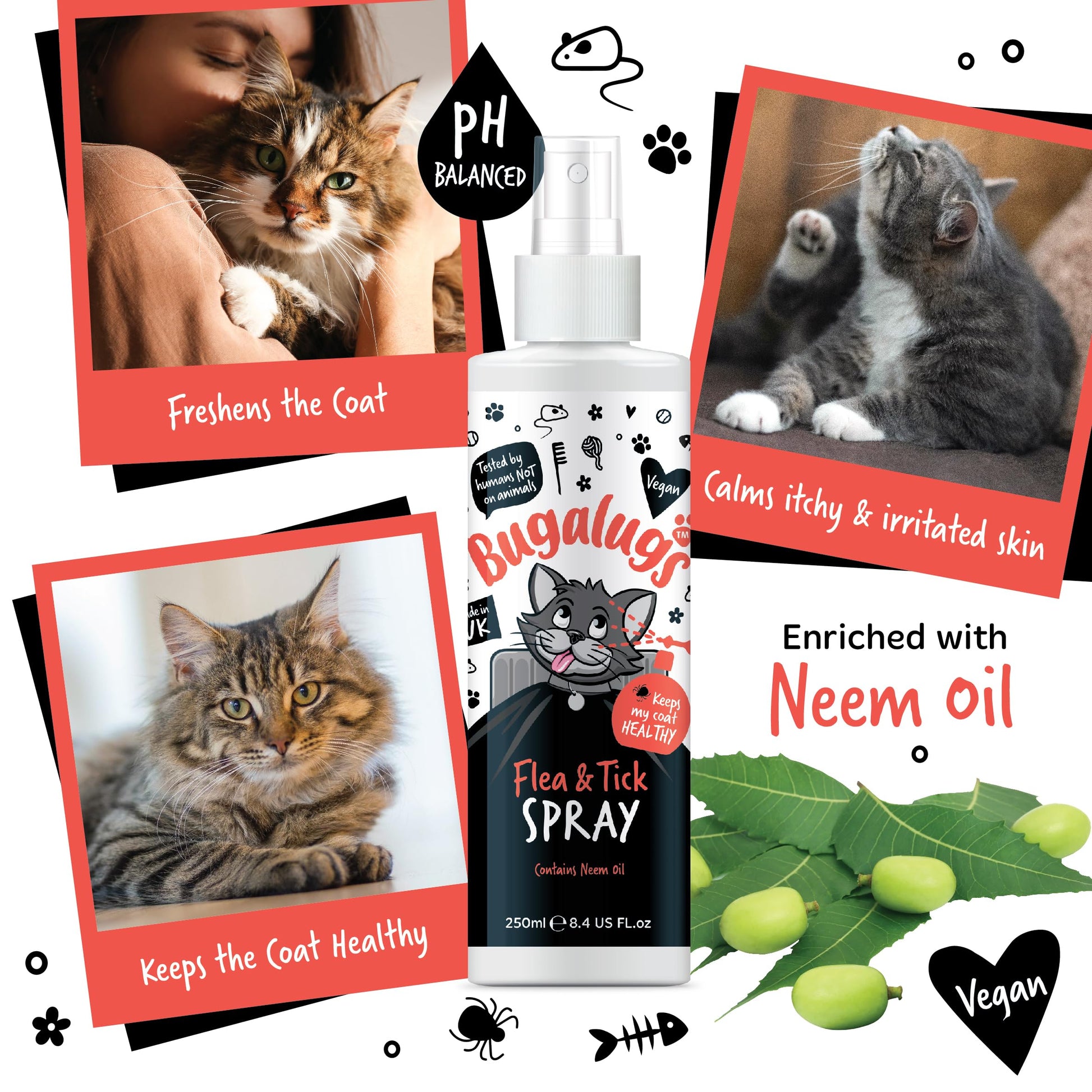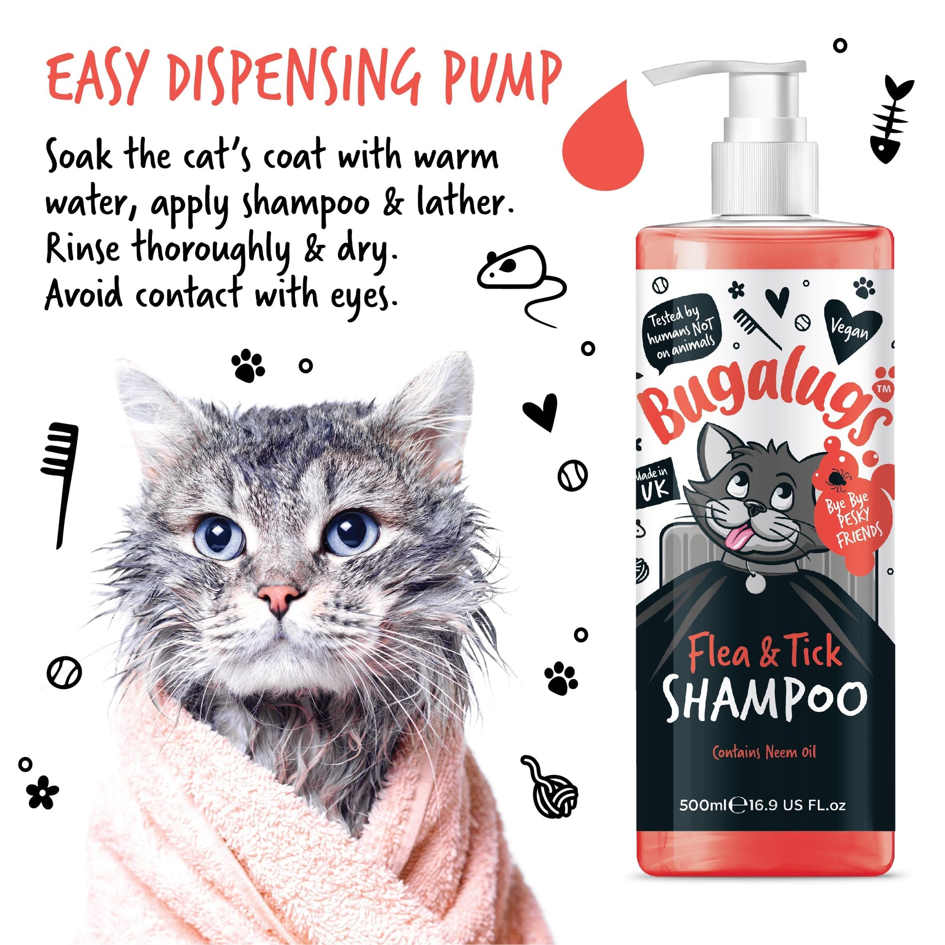 - Keeps me pest free! - Bugalugs Cat Flea & Tick professional kitten & cat shampoo fleas is immediately effective and completely safe. Enriched with Neem to help wash fleas, ticks and other biting insects out of your cat and kittens fur while also swiftly removing dirt and odour