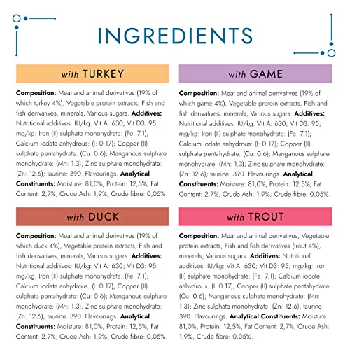 Gourmet Perle Chef's Collection multipack contains delicious recipes in Gravy with Turkey, Tuna, Duck and Lamb