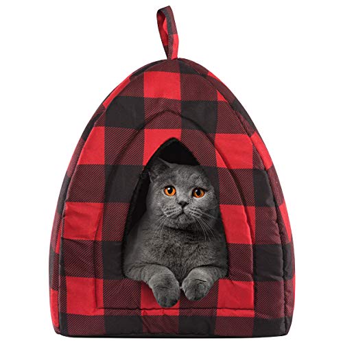 Hollypet Cat Bed Kitten Bed Self-Warming 2-in-1 Foldable Comfortable Igloo Triangle Pet Tent House