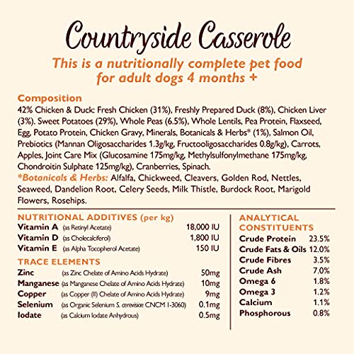 - This dog food is made with natural ingredients including freshly prepared meat and offal. We’re talking 31% fresh chicken and 8% freshly prepared duck, steamed cooked for gentle digestion