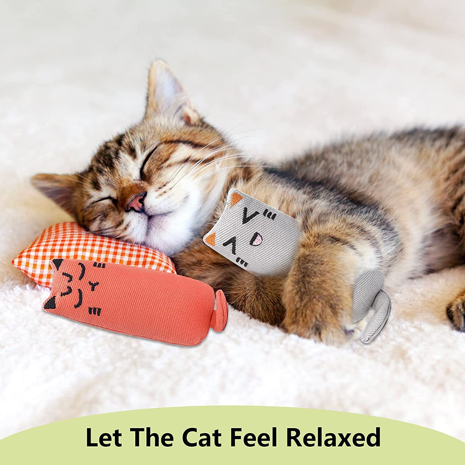 - 【Catnip Pillow】A safe and durable cat chew toy made of comfortable pure cotton, filled with PP cotton and catnip, safe and non-toxic, durable, can help cats clean their teeth and remove tartar when chewing and playing, and improve teeth health.