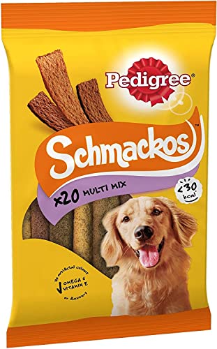 Pedigree Schmackos are delicious tender strips that are full of meaty flavours, designed to be a healthy and nutritional treat, made for training and rewarding