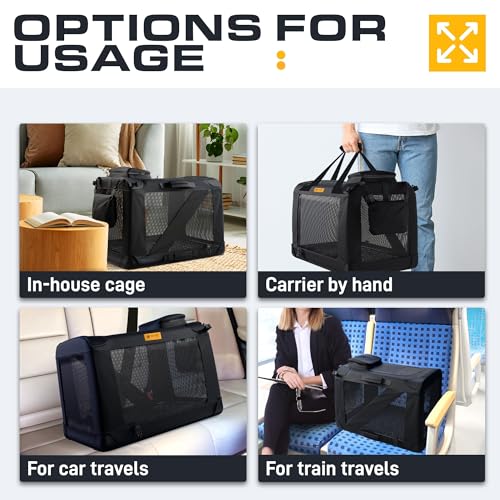 - Ideal solution for travels and home usage – with PetProved pet carrier forget frustrating travels with your furry friend! The car dog crate provides a safe and comfortable space for your pet, and as for you, it is easy to carry, install in the car/train and simply use it at home as a kennel. PetProved versatile dog travel crate for car can be yours now!
