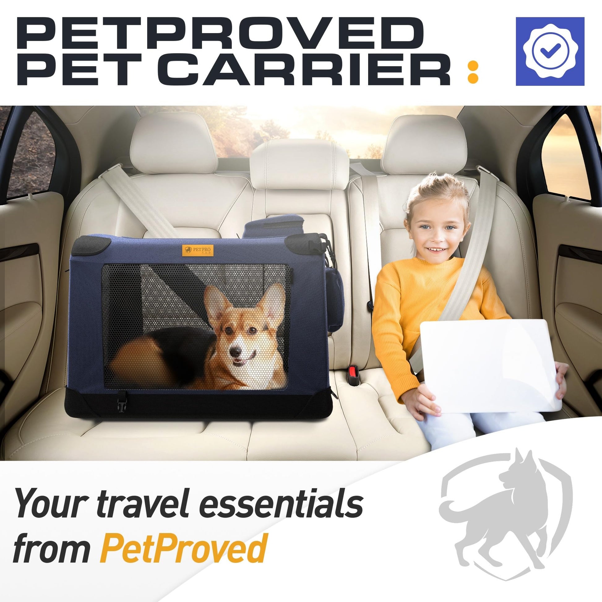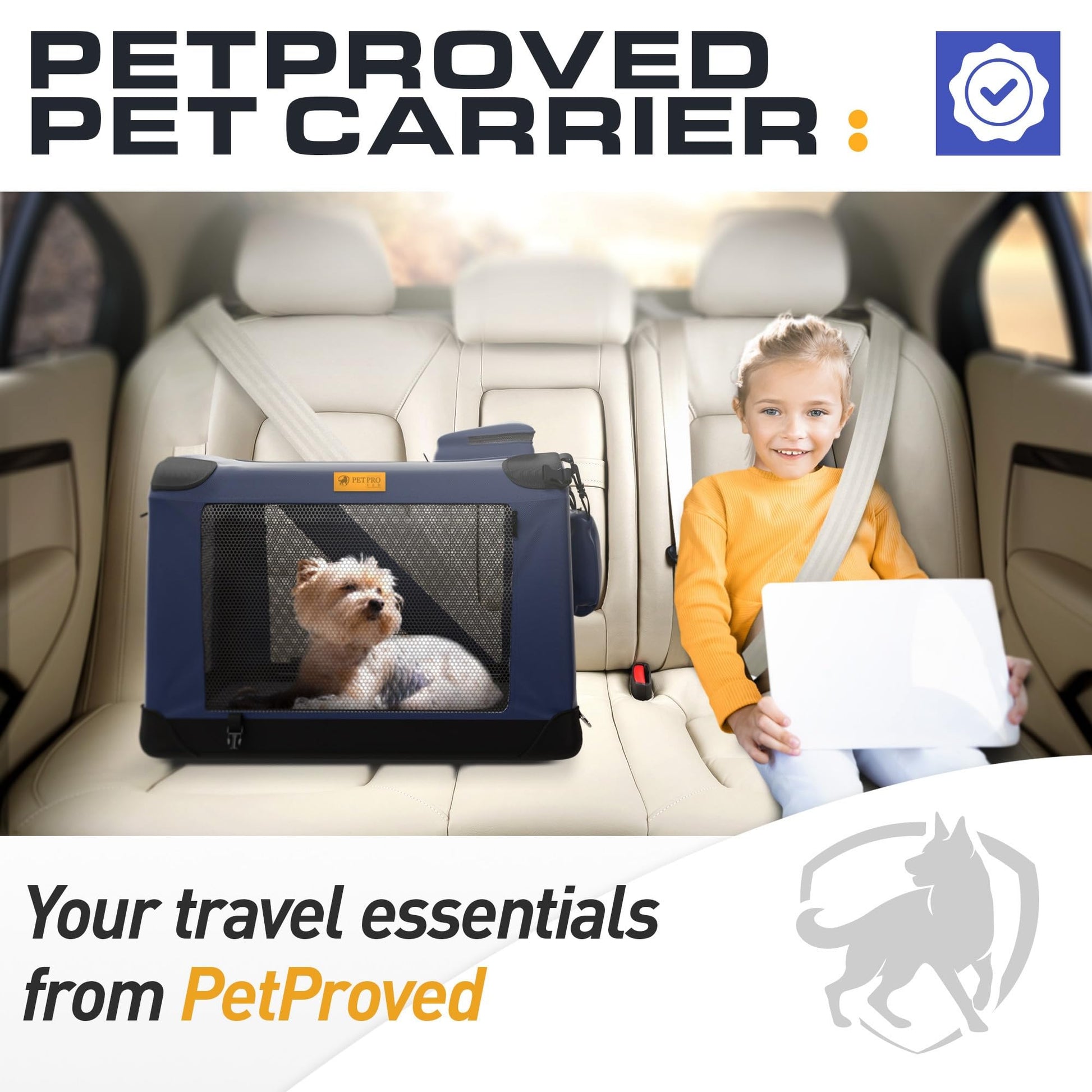 PetProved Dog Travel Crate Dog Carrier Cat Carrier Large Pet Carrier for Medium Dogs Puppy Carrier Soft Fabric Dog Car Crate Collapsible for Car