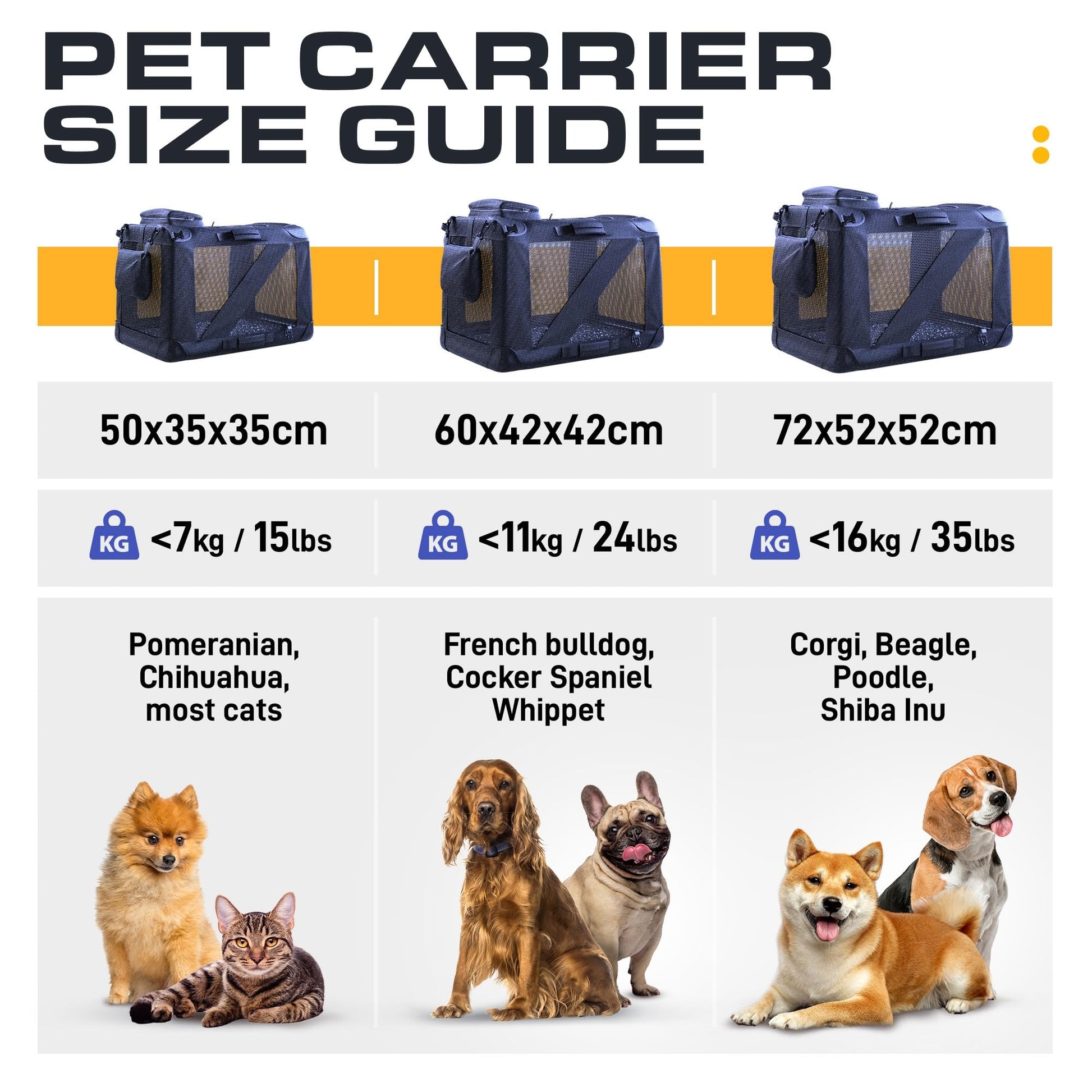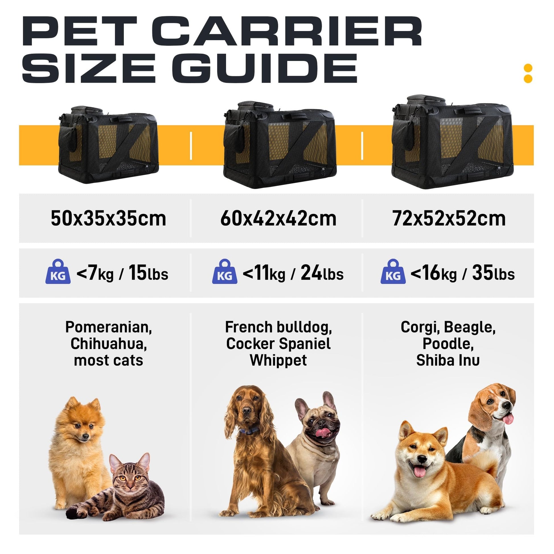 - Multiple sizes to suit your pet – as we know, different pet sizes require different items, so measure and weight your furry friend and choose the carrier! PetProved introduces two sizes: M with 60x42x42cm and L with 70x52x52cm measurements. From smallest ones to bigger ones - everyone can be your furry travel companion!