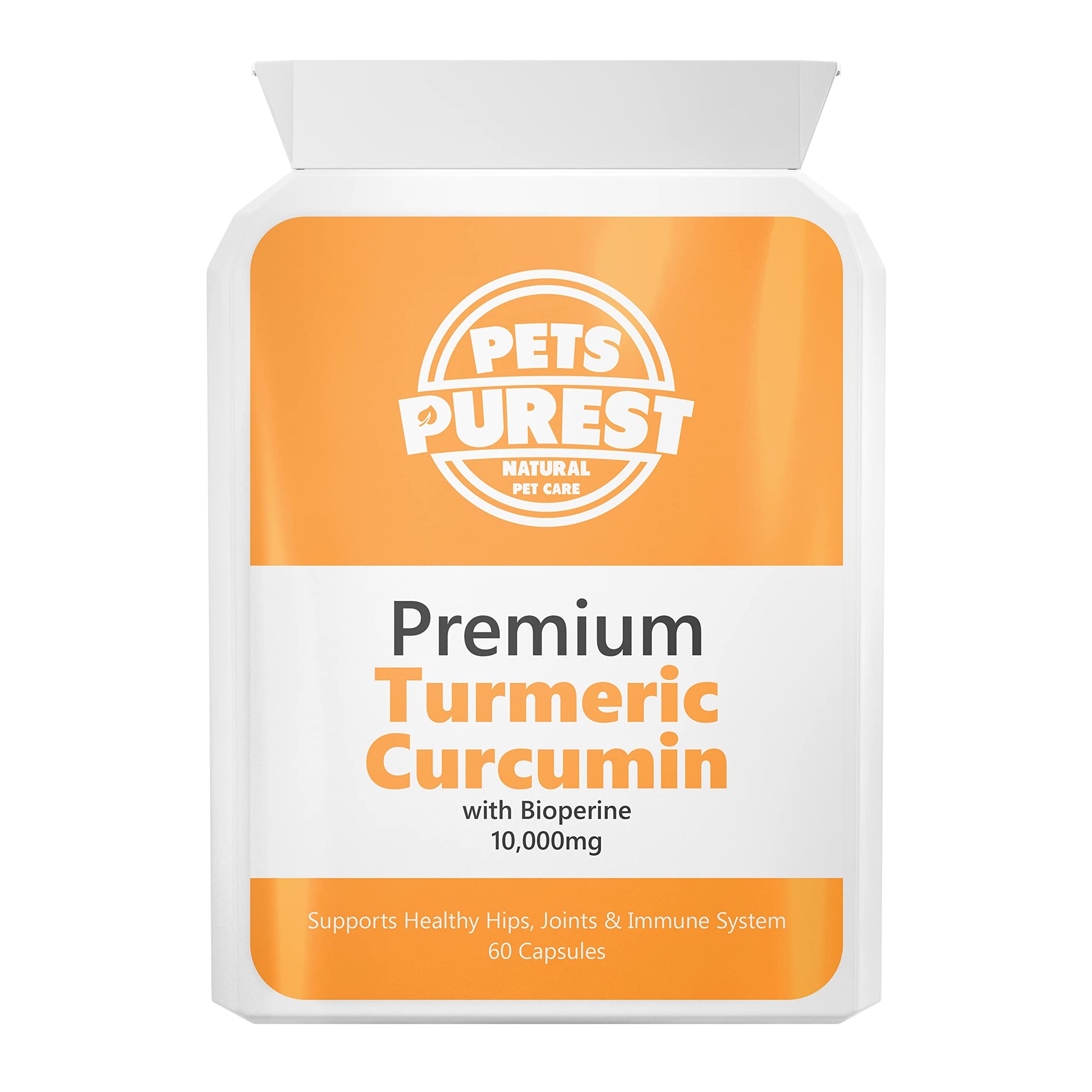 Pets Purest 100% Natural Premium Turmeric For Dogs 10,000mg with Active Bioperine Cats, Horses & Pets Powerful Antioxidant Supplement For Joints & Hips capsules
