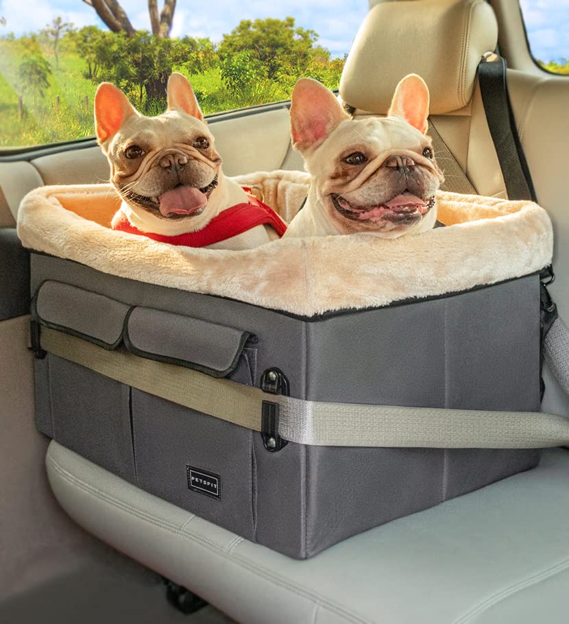 Petsfit Dog Car Seat, Upgraded Dog Booster Seat for Medium Dogs or 2 Small Dogs, Pet Travel Car Booster Seat for Front and Back Seats with Washable Double-Sided Cushion and 2 Safety Leashes