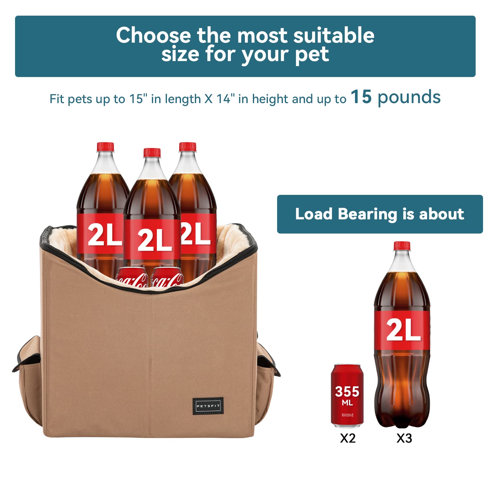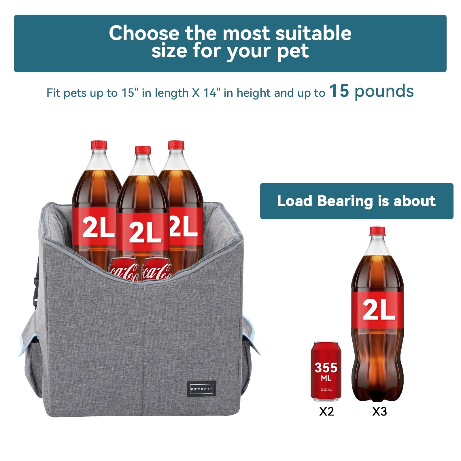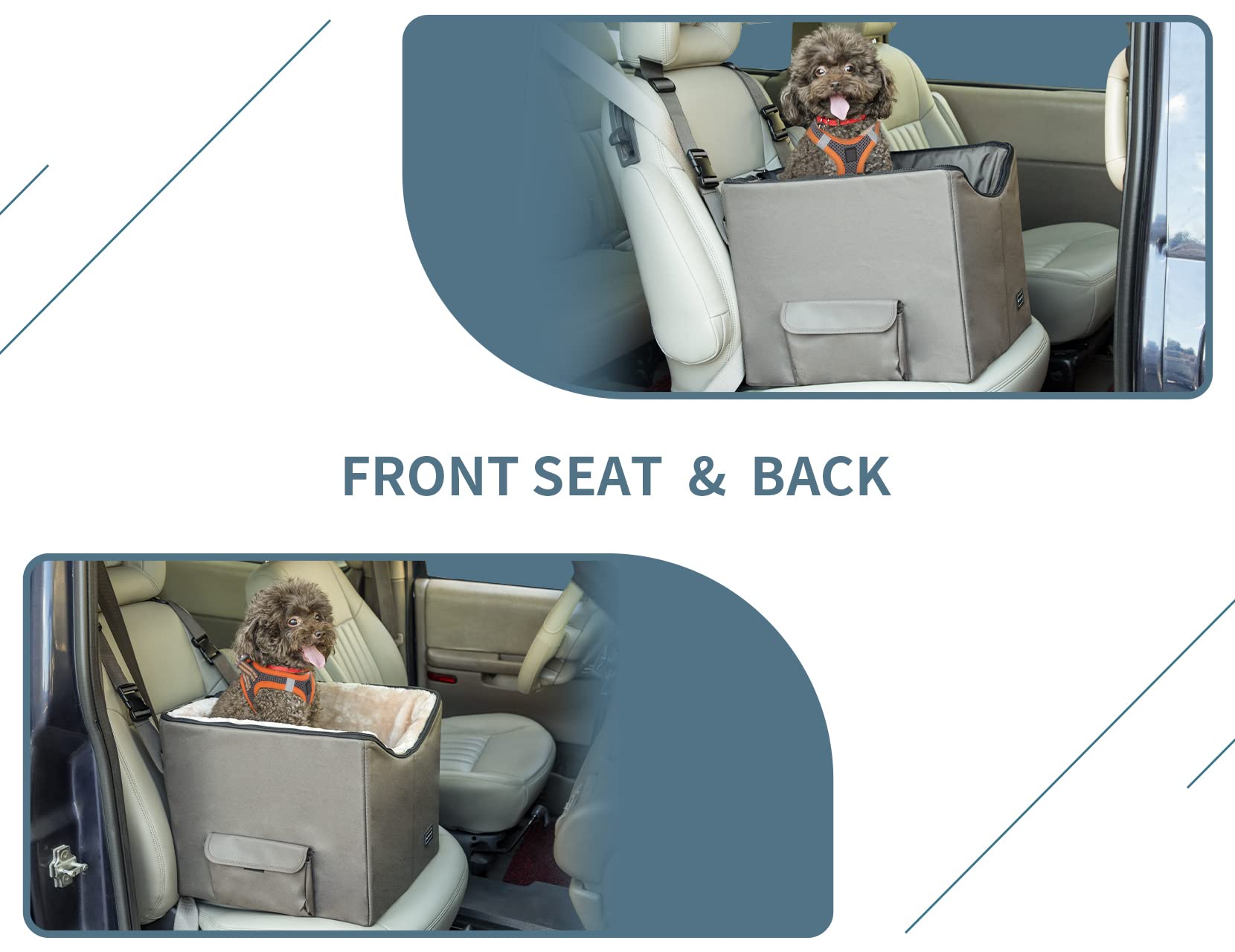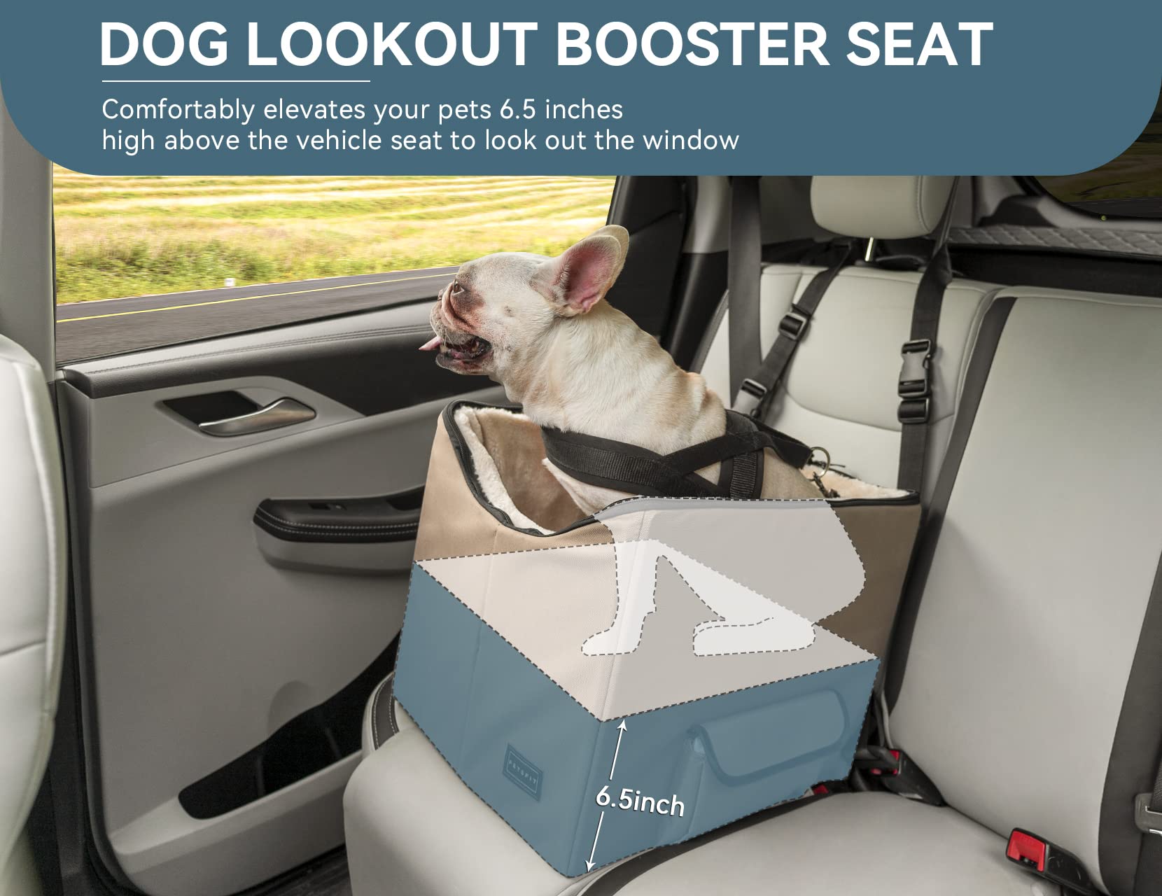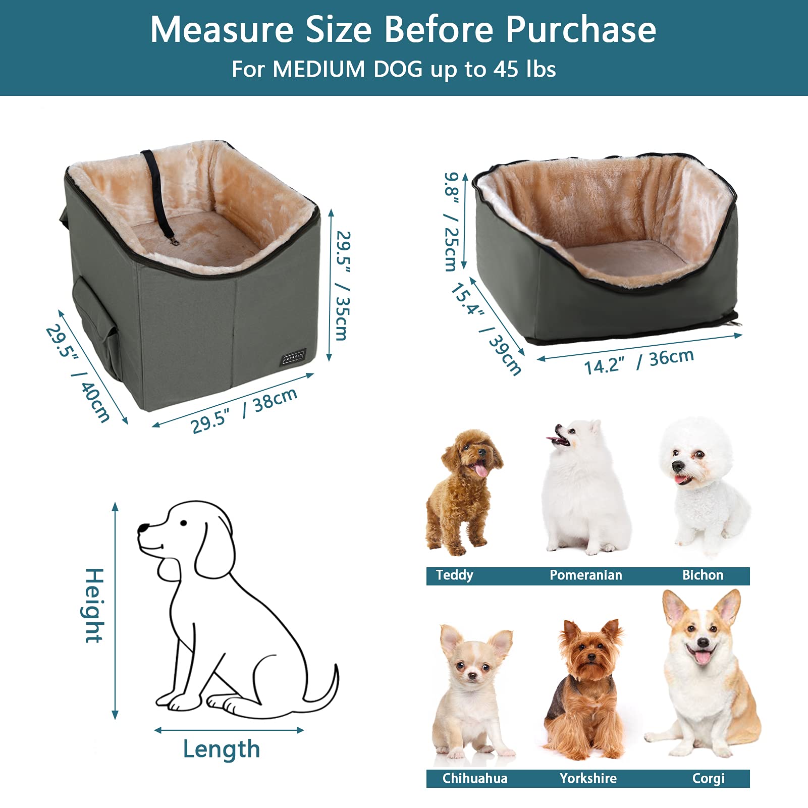 - [Sizing] With dimensions of 23" L x 16.5" W x 13.5" H, the dog booster seat is suitable for a medium sized dog up to 45 pounds or 2 small pets. Please measure your pets before making a purchase to choose the ideal dog car seat size.