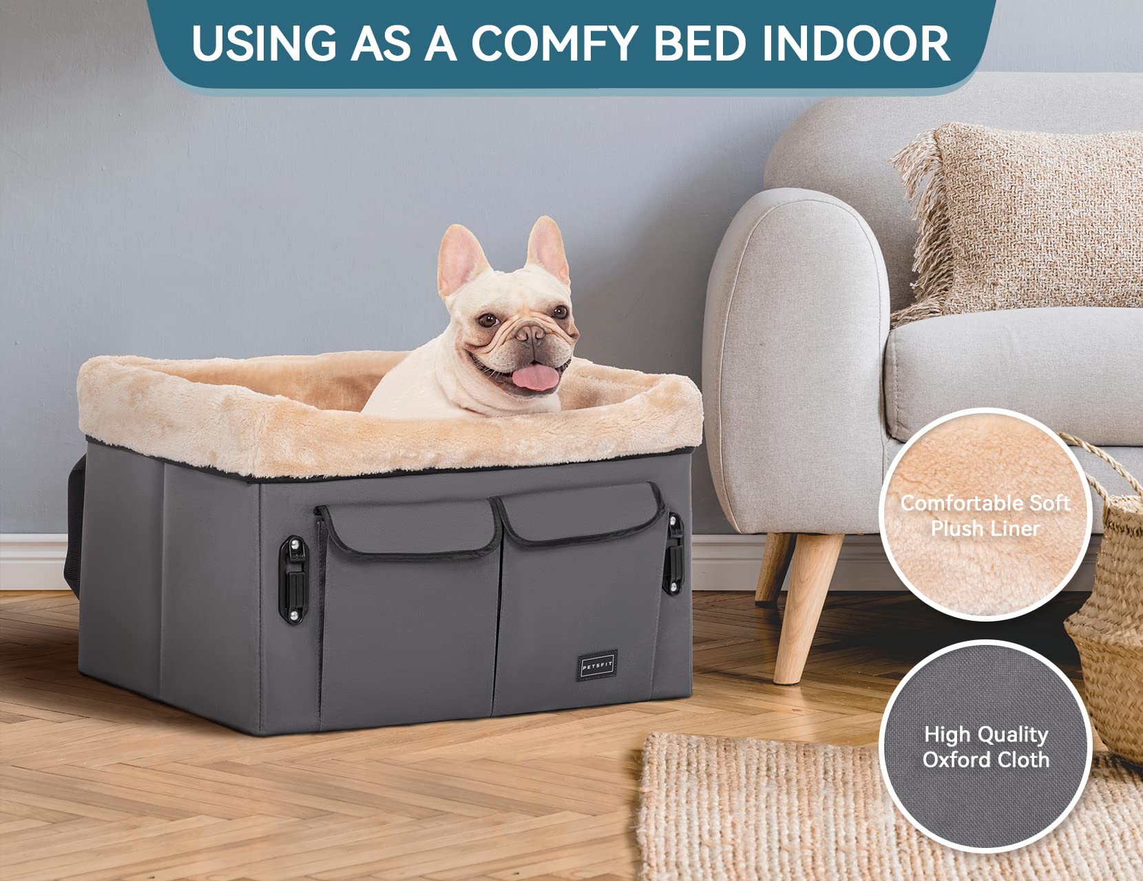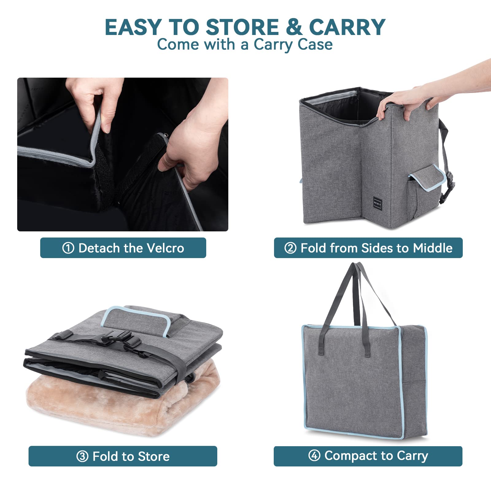 - [Easy to use] Easy to store when not in use thanks to the collapsible design, sturdy construction, and quick installation and removal in the backseat of a car. There are 2 storage pockets that can transport the daily needs of a pet. Additionally, the dog car seat has an adjustable buckle design which is suitable for a variety of car types and can be quickly installed on most standard car seats.