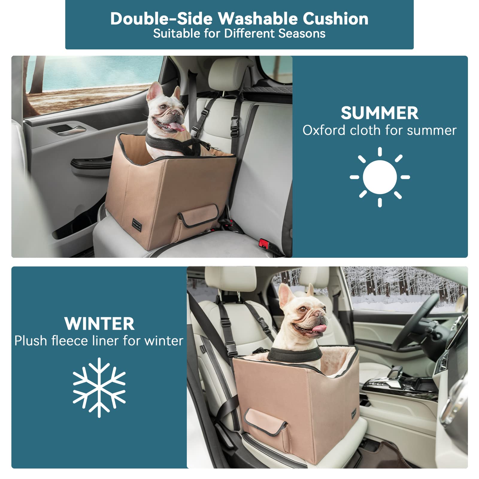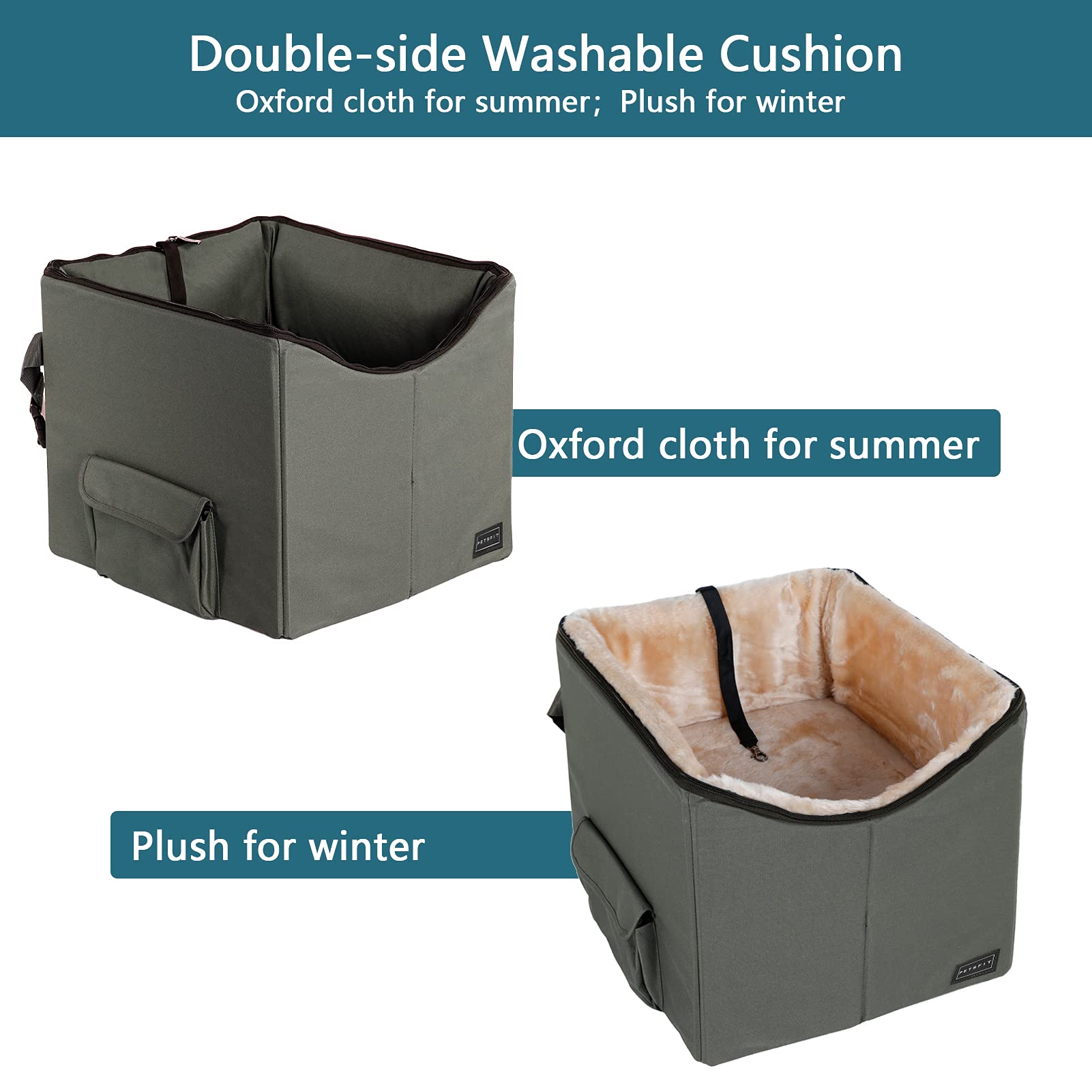 - [Washable & Comfortable Pad] The dog booster seat is made of high-quality oxford and comes with a pad that can be removed for washing (hand washing is recommended). The upgraded mat comes with soft edges, suitable for pets to lay their head over the dog car seat for rest and relieve nervousness or carsick. It can also serve as a dog car bed.