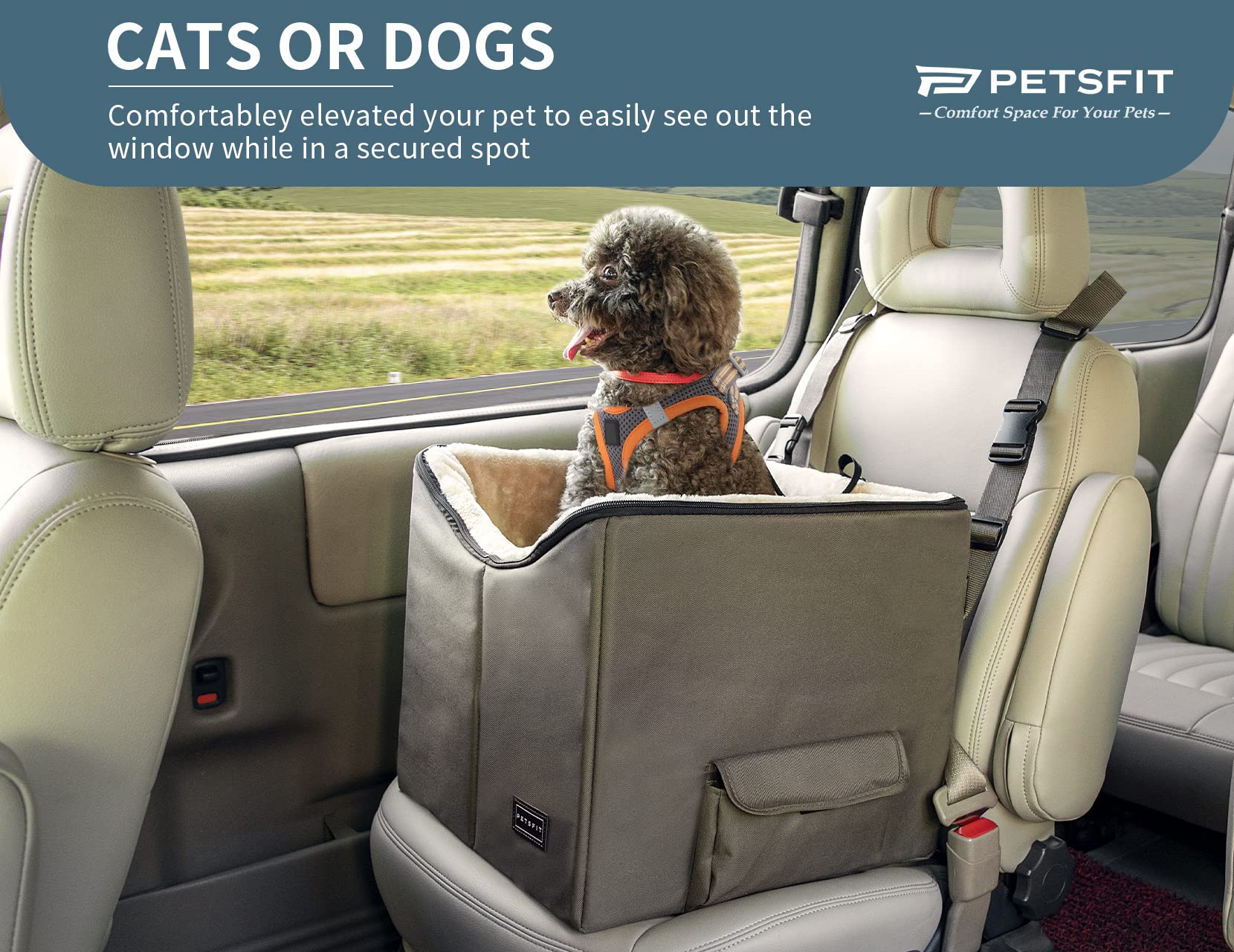 - [Dog Car Seat with View] The dog booster seat can give your anxious or motion-sick dog a window view so that they can look out and enjoy the travel while providing excellent safety and travel comfort when you go on a long road trip with your furry friends.
