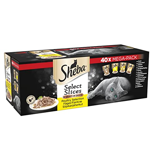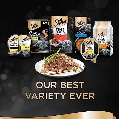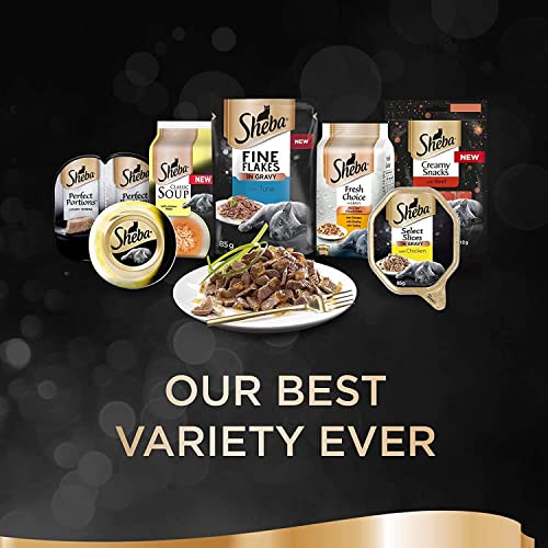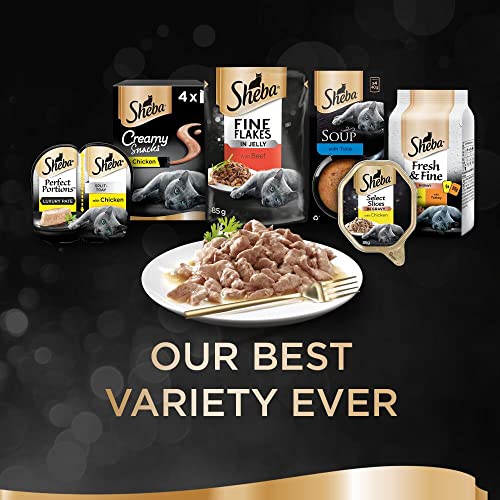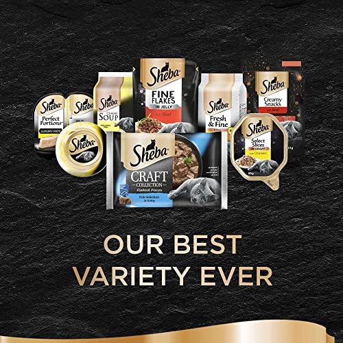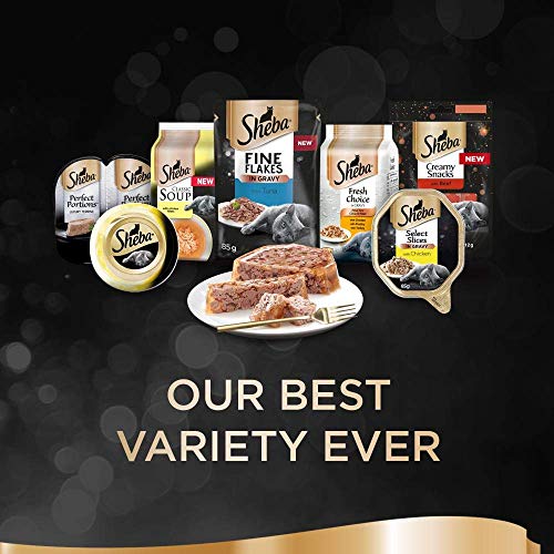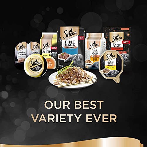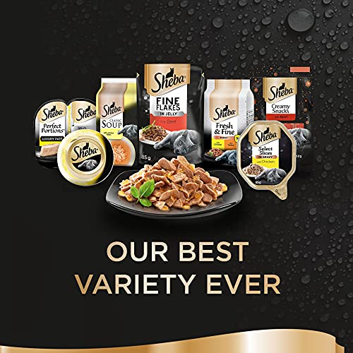 Items delivered: 40 x 85g Sheba Fine Flakes Poultry Collection in Jelly / Multipack with poultry variety / Suitable for any adult cat