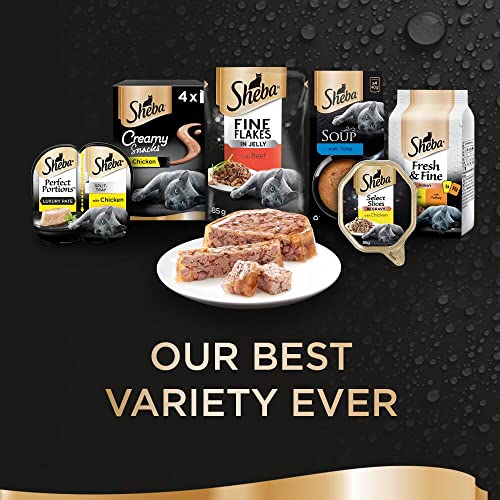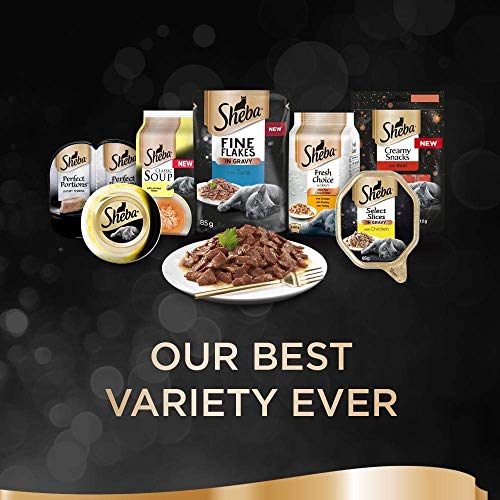 Resistance is futile with Sheba's exquisite line of cat food and treats / High-quality ingredients promote complete nutrition / Food comes in 85 gram pouches ready to serve to your feline friend