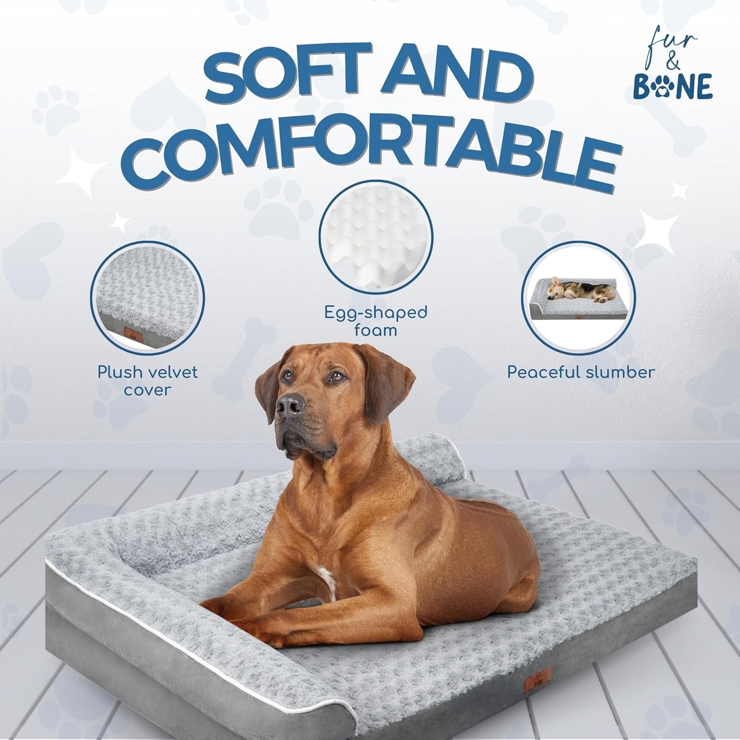 Velvet Large Dog Bed - Orthopedic Dog Mattress with Egg Crate Foam for Joint Support - Non-Slip Bottom - Washable Bed - Puppy Bed - Crate Large Dogs